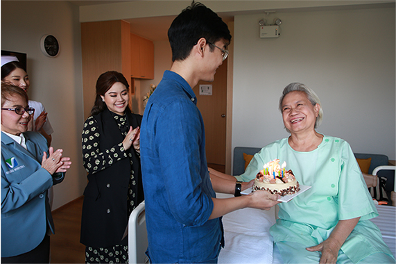 เพื่อให้ทุกท่านได้มีคุณภาพชีวิตที่ดีและสมบูรณ์เหมือนอยู่ที่บ้านของตัวเอง เรายังเคารพและคำนึงถึงความเป็นส่วนตัว ด้วยการมอบความเงียบสงบให้ท่านในยามพักผ่อน ขณะเดียวกันเรามีกิจกรรมที่สนุกและเพลิดเพลินเพื่อให้ทุกท่านมีร่างกายและจิตใจที่แจ่มใสและแข็งแรง เราต้องการให้ท่านได้มีช่วงเวลาแห่งความสุขในแบบที่ต้องการ และเรายังคัดสรรอาหารสุดพิเศษที่มีประโยชน์สำหรับท่านอีกด้วยพนักงานทุกคน จะดูแล เอาใจใส่ ผู้สูงอายุ และผู้ป่วย เหมือนกับญาติ ของตัวเองและพวกเขาได้รับการฝึกฝนเพื่อที่จะดูแลและอยู่เคียงข้างผู้สูงอายุ และผู้ป่วย ทุกท่าน เพื่อให้ผู้สูงอายุสามารถ ดำเนินชีวิตได้อย่างปกติสุข ทีมของเราทุกคนต่างมุ่งมั่นและให้ความสำคัญกับการดูแล เพื่อให้ทุกท่านได้ใช้ชีวิตเพื่อเติมเต็มช่วงวัยของผู้สูงอายุและผู้ป่วยอย่างมีความสุข